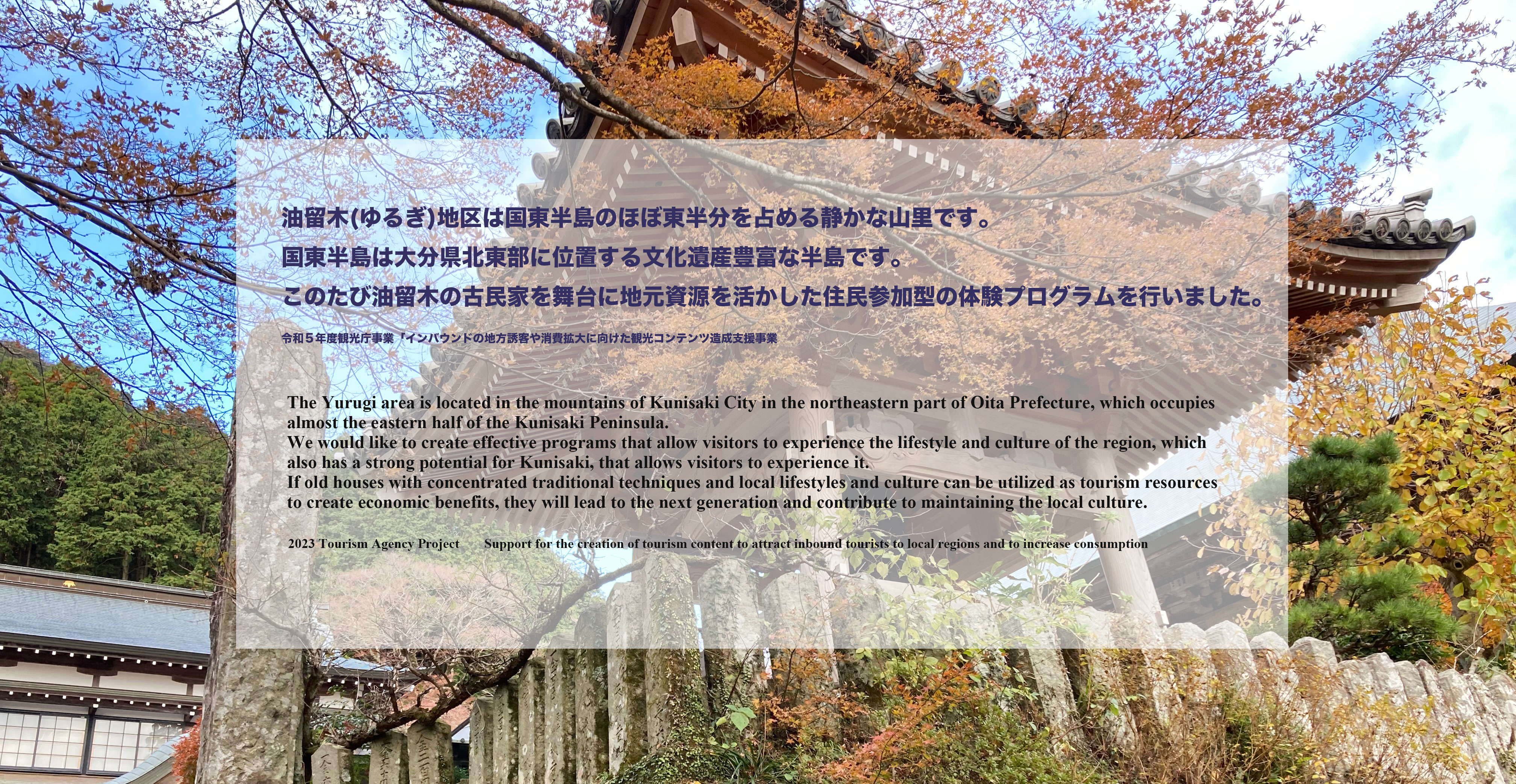 Yurugi is a culturally rich village stretching along the eastern coast of the Kunisaki Peninsula. Here, the YURUGI PROJECT has begun.